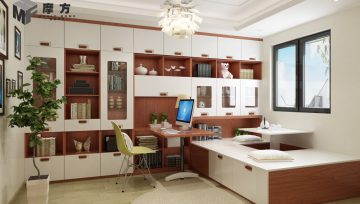打造一個(gè)二人工作區(qū)是最好不過的了。中山定制家具公司建議可以選擇靠墻定制一個(gè)長的工作裝,足夠放兩臺(tái)電腦的空間,工作桌上方可以定制一排書架。作為區(qū)隔中間可以安排一個(gè)置物架或收納柜。不辦公時(shí)這里也可以成為餐桌, 或朋友來了可以一起聊天的地方。打造成多功能區(qū),讓空間利用最大化。注意工作桌的寬度無需太大,足夠放置一臺(tái)電腦即可。