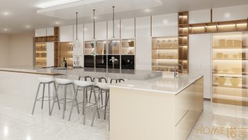 迷你衛(wèi)生間讓干濕分離,不會(huì)給空間造成負(fù)擔(dān)。內(nèi)為馬桶和淋浴濕區(qū),外置洗臉盆為干燥區(qū)。