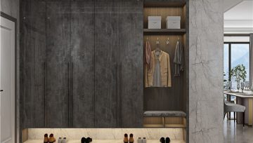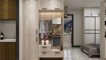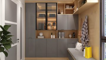 如果入戶玄關(guān)有凹位的話,就可以將鞋柜設(shè)計成嵌入式,利用墻面的空間,在考慮墻體的承重范圍下,直接將柜子融入墻體中,完美填補凹位缺陷,既美化了空間,又不會妨礙門的開關(guān),對其他的家居功能沒有任何影響。當(dāng)然嵌入式鞋柜可以根據(jù)自己實際需求選擇定制到頂,也可以不到頂?shù)男问健?/span>