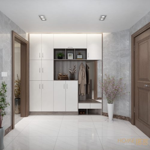 平行式鞋柜是最受現(xiàn)代年輕人青睞的設(shè)計之一,功能上比較多樣化。采用的是吊柜與地柜組合,多出一個換鞋區(qū)和裝飾區(qū),在鞋柜的下方設(shè)計擺放鞋子的區(qū)域,中間則設(shè)計成鏤空的臺子,用于擺放鑰匙或包包等小物件。平行式鞋柜設(shè)計精致度高,并且儲物空間強大,不管是什么類型的玄關(guān)都能輕松駕馭!