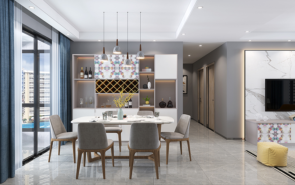 餐邊柜可以儲存餐飲相關(guān)的食材、也可以作為隨身用品的一個(gè)收納區(qū)域,同時(shí),平常需要用的小家電也可以放在餐邊柜內(nèi),餐邊柜可以起到很好的收納作用,使整個(gè)餐廳區(qū)域更加干凈整潔。